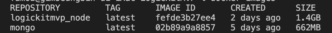 docker images 명령어를 이용해서 이미지를 불러오면 만들어놓은 이미지를 볼 수 있다.