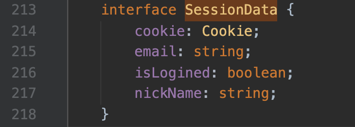 제 기준으로 213~ 215줄에 SessionData라는 인터페이스 정의가 보이실 것입니다.