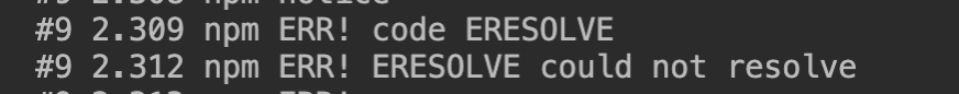 클라이언트 Dockerfil을 작성 중 code ERESOLVE ERESOLVE could not resolve 라는 오류를 만나게 되었다.