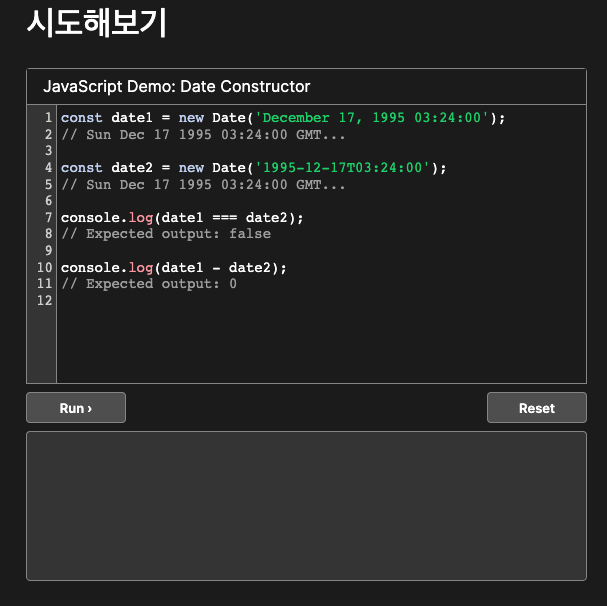 JavaScript newDate() 공식문서에 제시하는 예제 코드의 date2를 보다가 생각한 것이다.