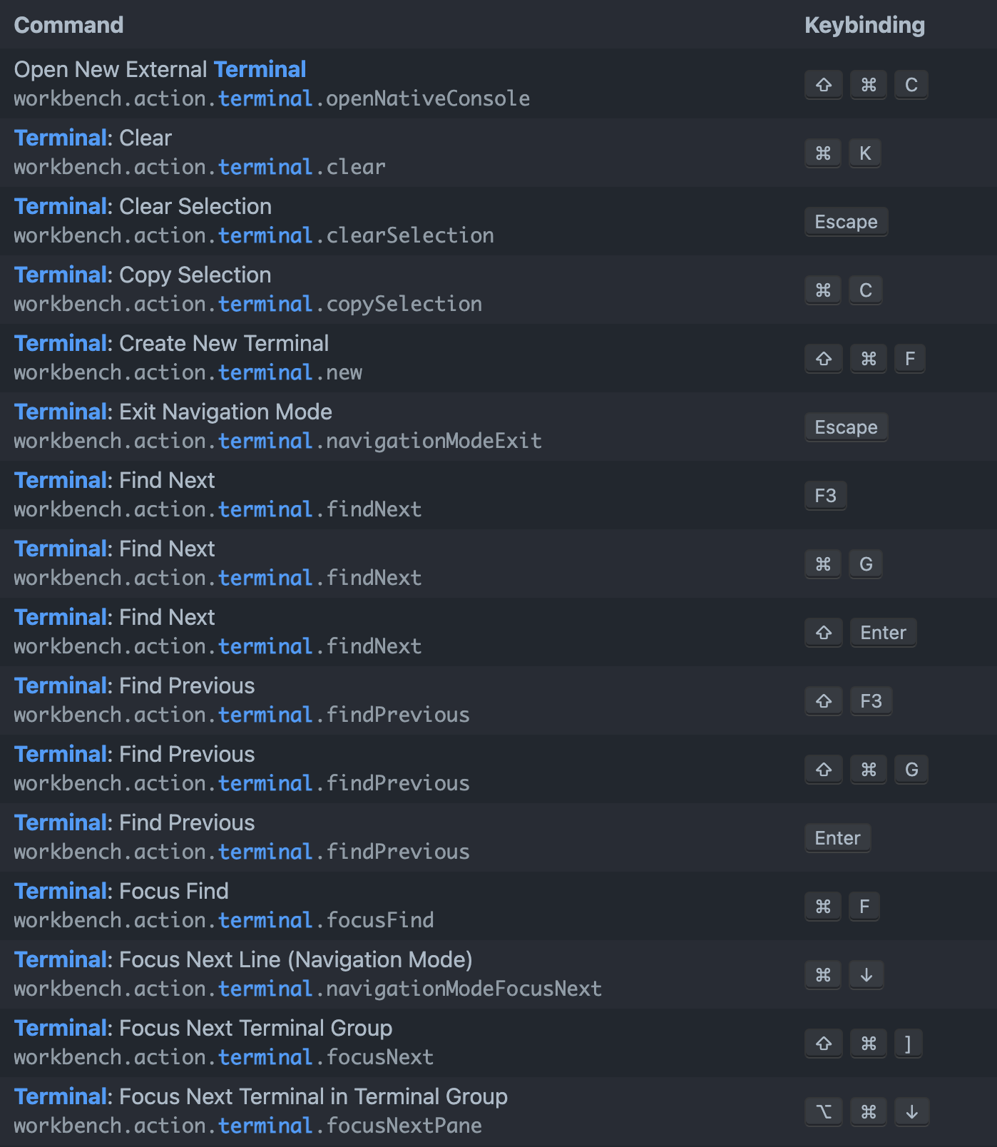 그럼 검색창에 terminal만 입력하셔도 상당히 많이 커맨드를 보실 수 있습니다.