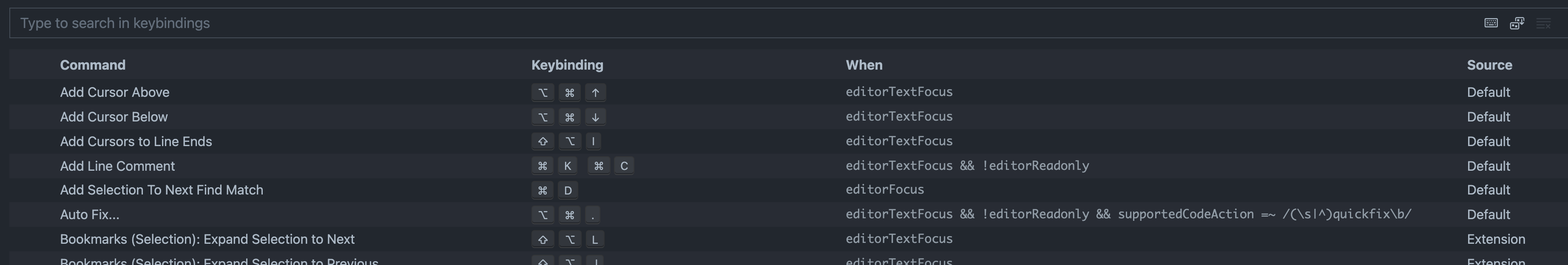 기본적으로 VSCode에서 제공하는 단축키들이 있습니다.