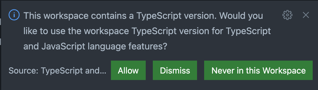vscode에서 바로 'typescript workspace 버전 사용 할래?'라고 물어본다.