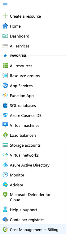 왼쪽 상단에 있는 가로선 3개를 누르면 맨~ 아래에 Cost Management + Billing이 있다.