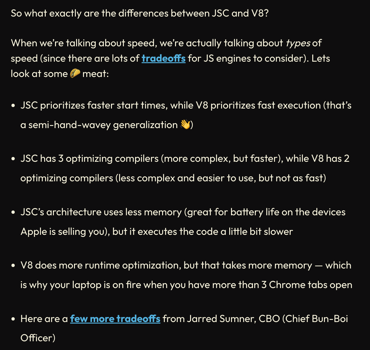 두번째가 흥미로워 더 찾아보니 JSC와 V8에서 사용하는 JIT 아키텍처가 다르다고 한다❗️
