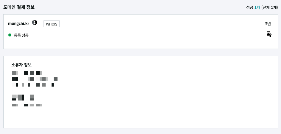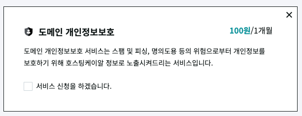 난 여기에 도메인 개인정보호 서비스를 신청했다.