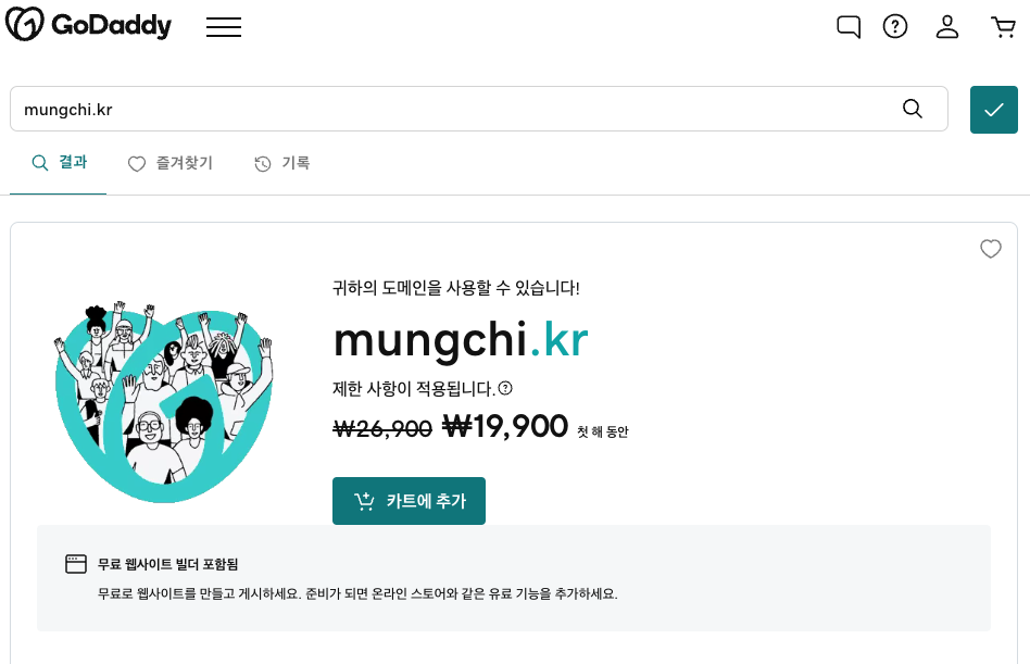 GoDaddy라는 사이트에 가서 쳐보니 같은 도메인인데 만원이 더 비싸다!