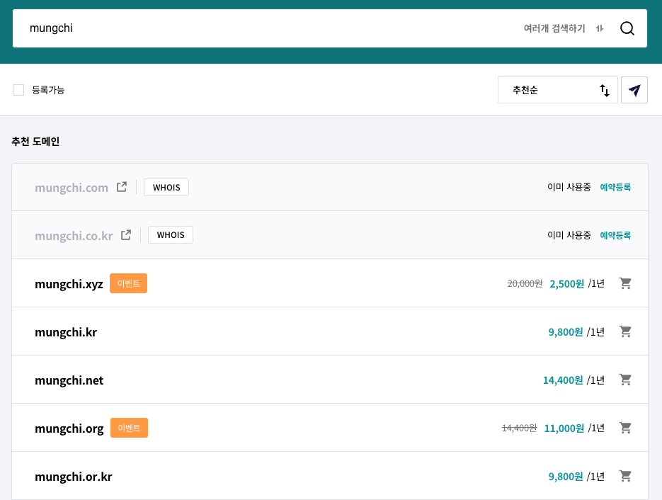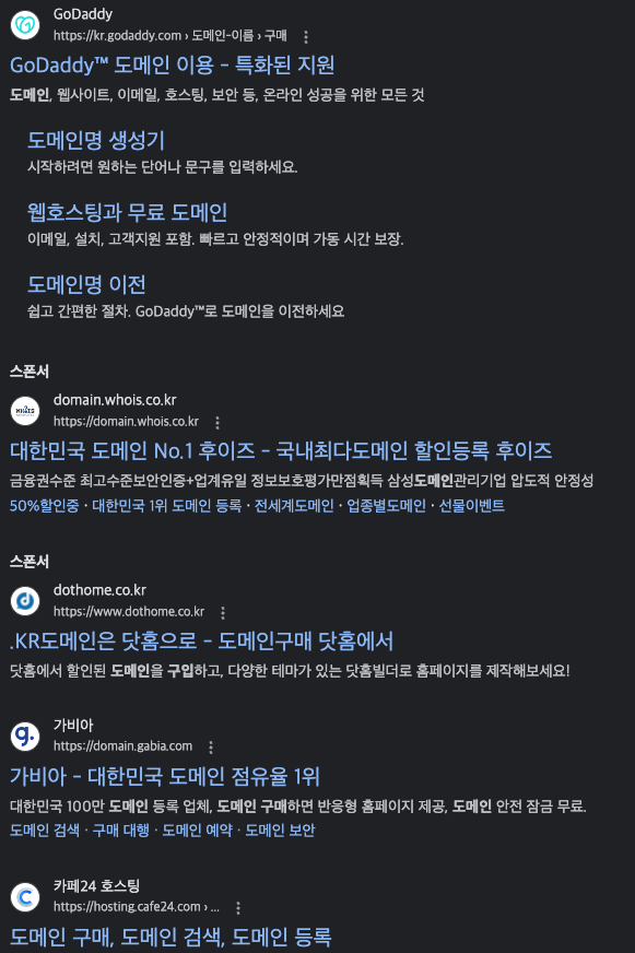 구글에 도메인 구매라는 검색어만 쳐도 나오는 업체가 엄청나다.
