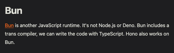 hono가 deno와 bun을 위해 만들어졌다는 말이 사실인 것처럼 공식문서에 따로 정리되어져 있다.