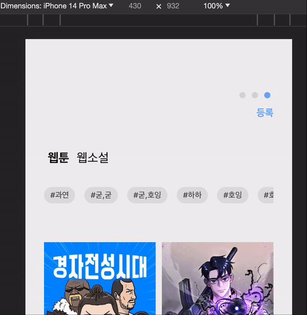 또한 너비를 75%에서 100%로 바꿔주니 아이폰 프로 14 맥스에서도 잘되는걸 확인할 수 있었다.