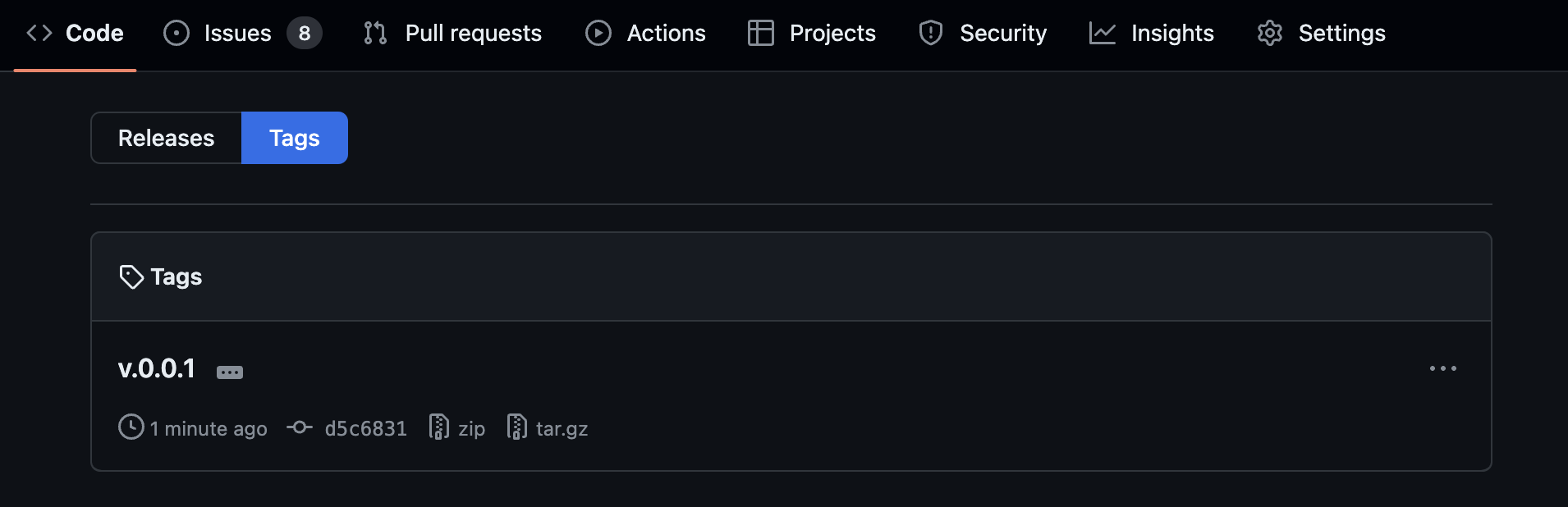 github로 가서 해당 레포의 tags를 보면 잘 올라간 것을 확인 할 수 있다.