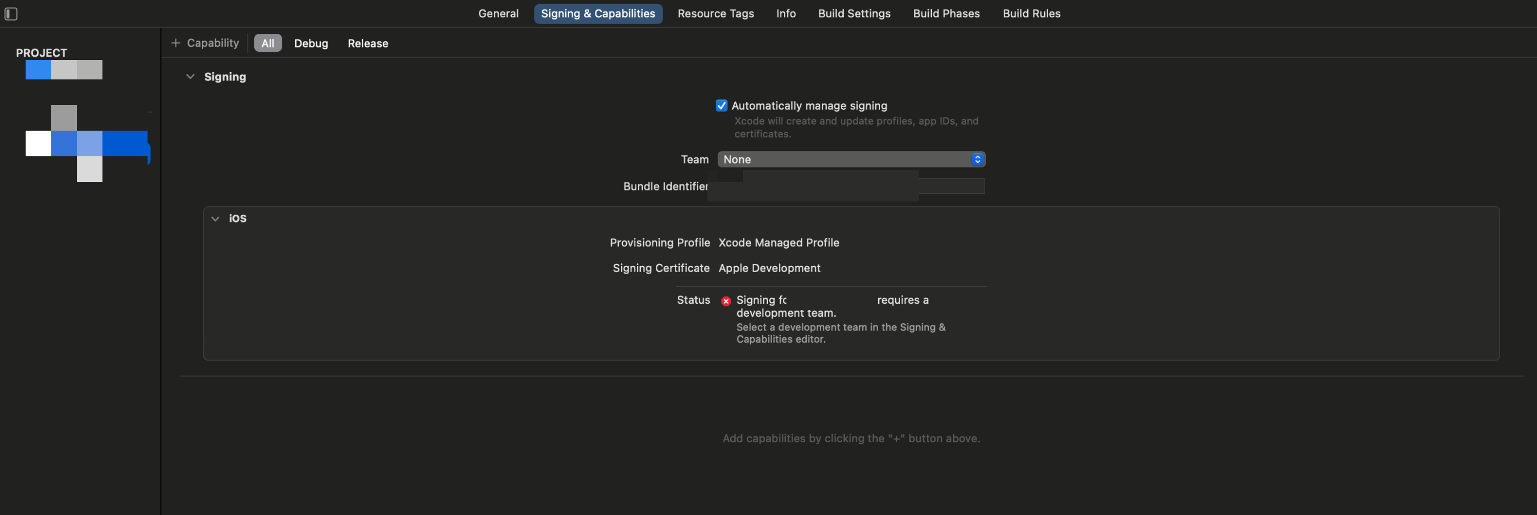 그 이유는 바로 맨 상단에 있는 Automatically manage signing으로 되어져 있기 때문이다