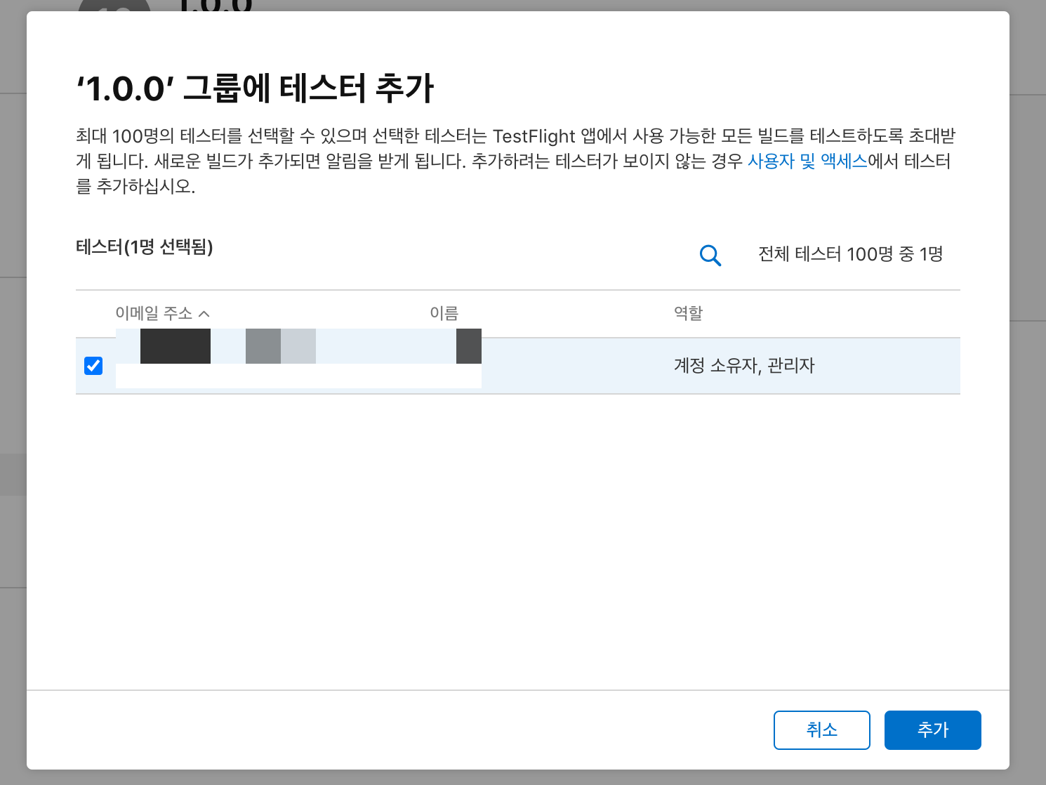 그러나 내부 테스트는 Apple Developer Team에 등록된 계정만 사용할 수 있다