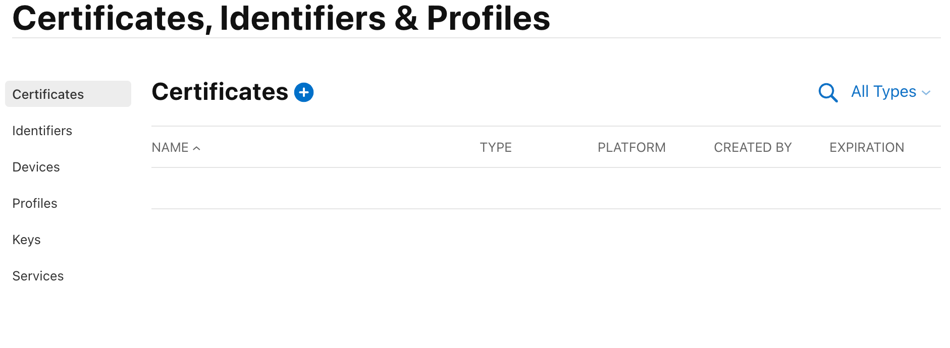 Certificates 옆에 있는 파란색 + 버튼 클릭하기