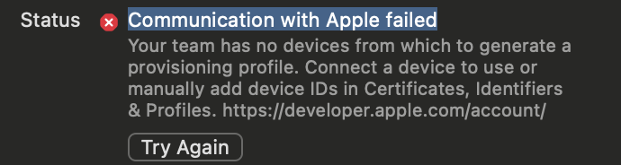 Communication with Apple failed 해결하기
