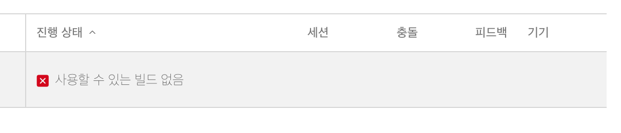 진행 상태를 보면 '사용할 수 있는 빌드 없음'이라고 뜬다