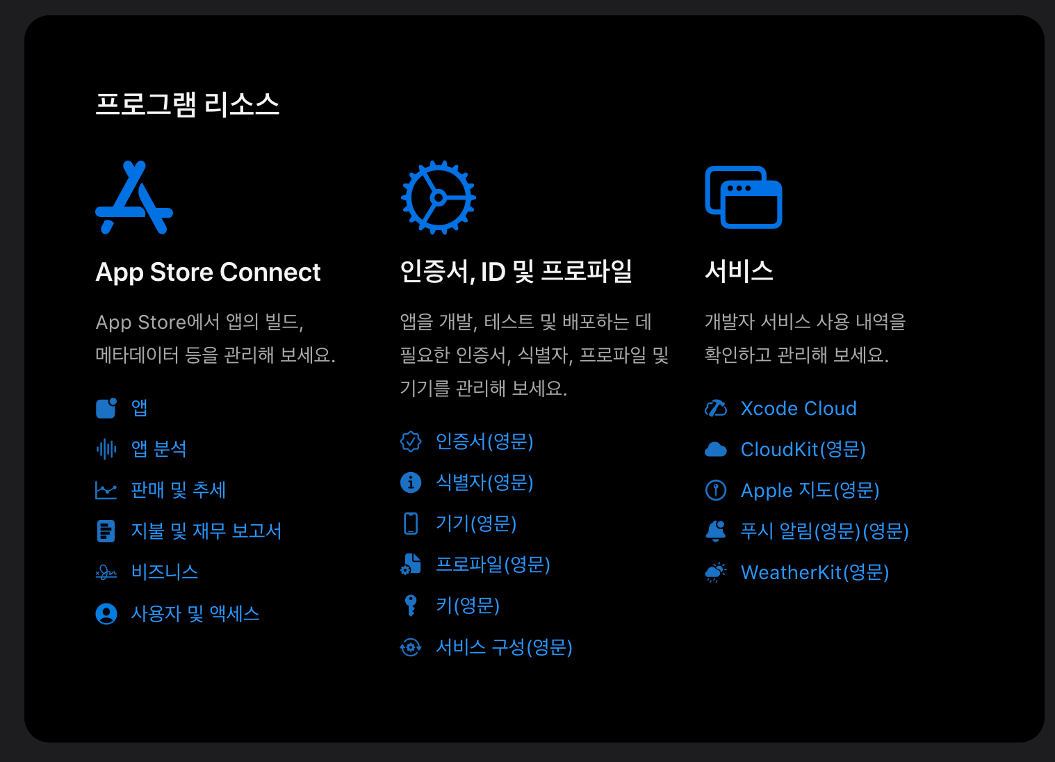 그걸 누르면 다음 화면에서 App Store Connect를 클릭