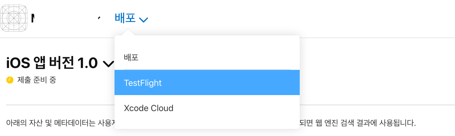 App Store Connect에서 앱 선택 후 TestFlight 클릭