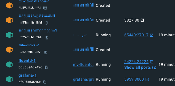 그러면 이미 fluentd가 켜져있어 다른 컨테이너들이 잘 올라갔다.