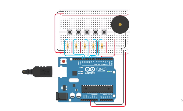 아두이노 버튼 5개를 이용해서 피에조 연주하기